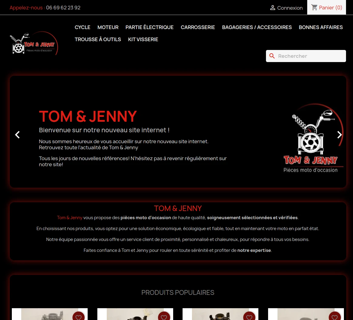 Site internet Tom & Jenny - Pièces moto d'occasion